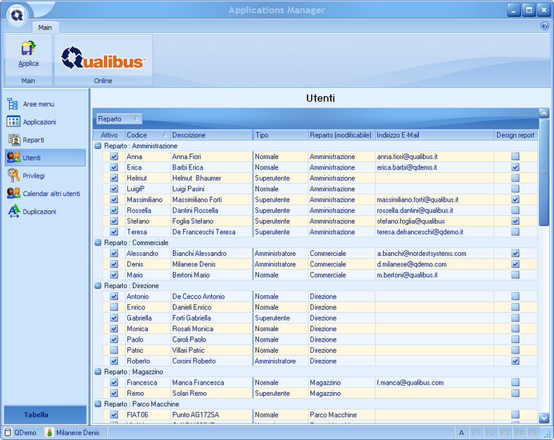 In questa applicazione viene impostata e gestita la sicurezza degli accessi di tutti gli utenti alla base dati di Qualibus.