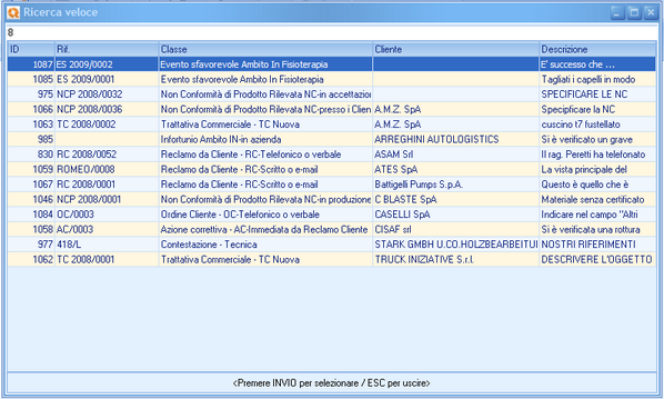 Il sistema fast-lookup per la ricerca veloce dei record è già attivo al momento dell'apertura dell'applicazione: è sufficiente digitare sulla tastiera anche una parte qualsiasi del nome della scheda o del codice da ricercare che la ricerca isolerà velocemente la scheda desiderata.