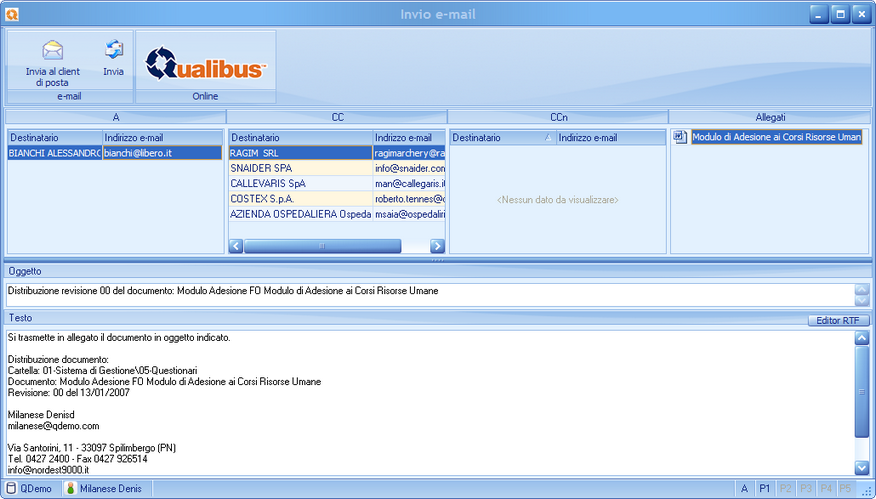 Sono diverse le applicazioni di Qualibus che supportano l'invio automatico di E-mail.