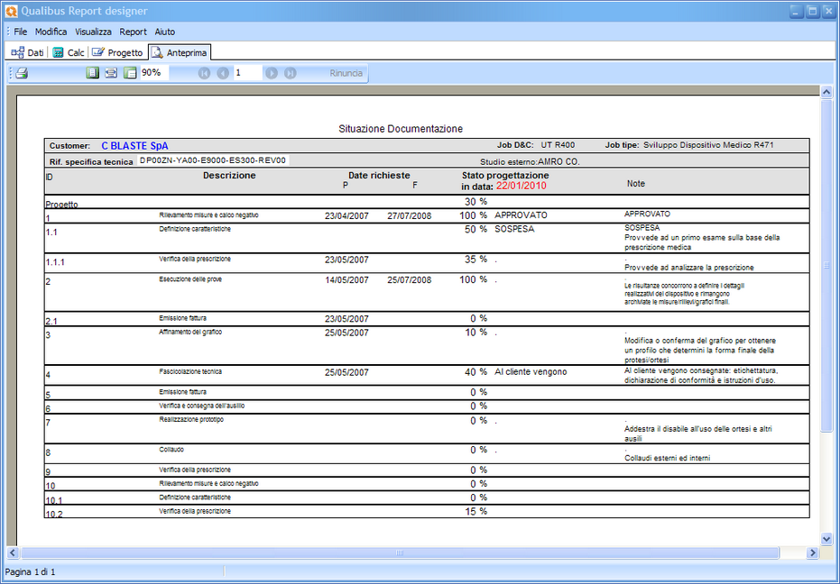 Un esempio di import fatto sullo stesso applicativo è il report progettato dall'Assistenza di Qualibus ed inviato al cliente.